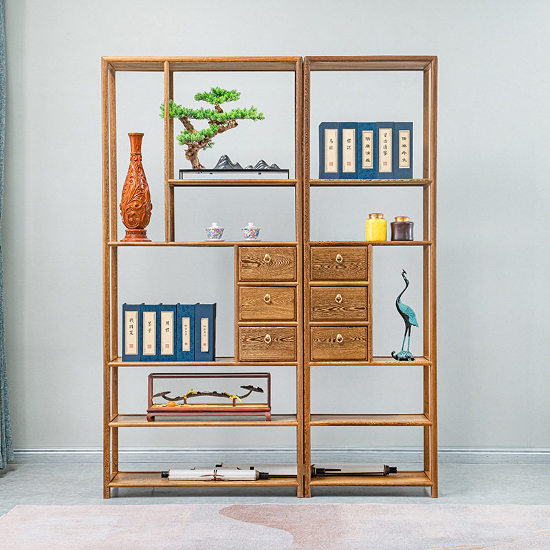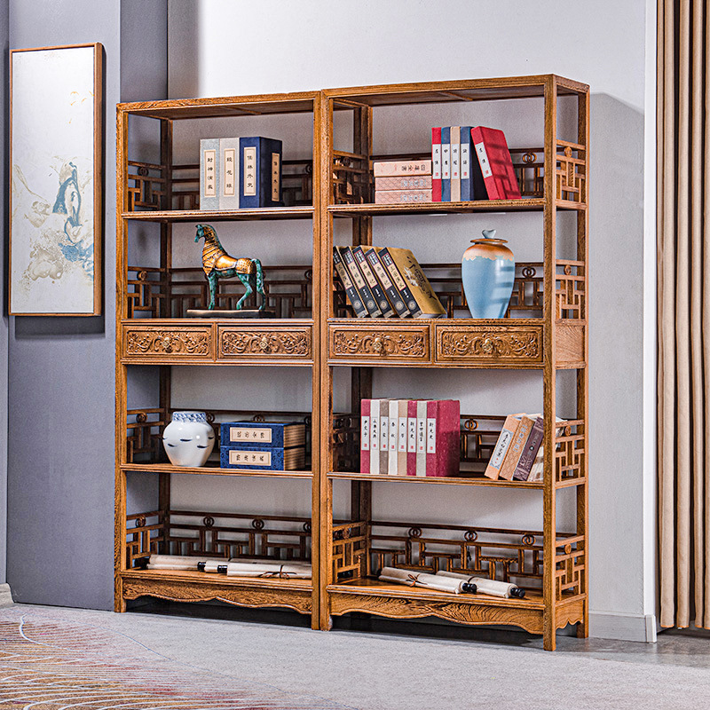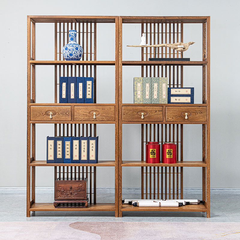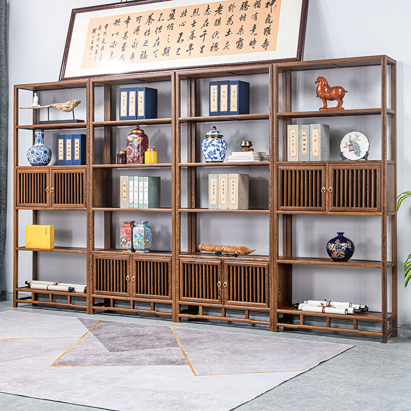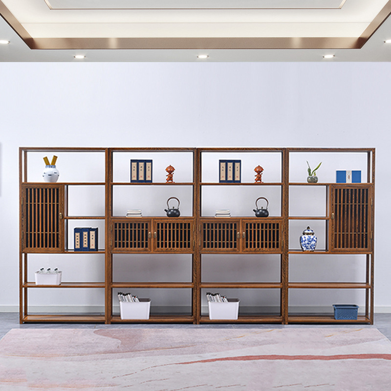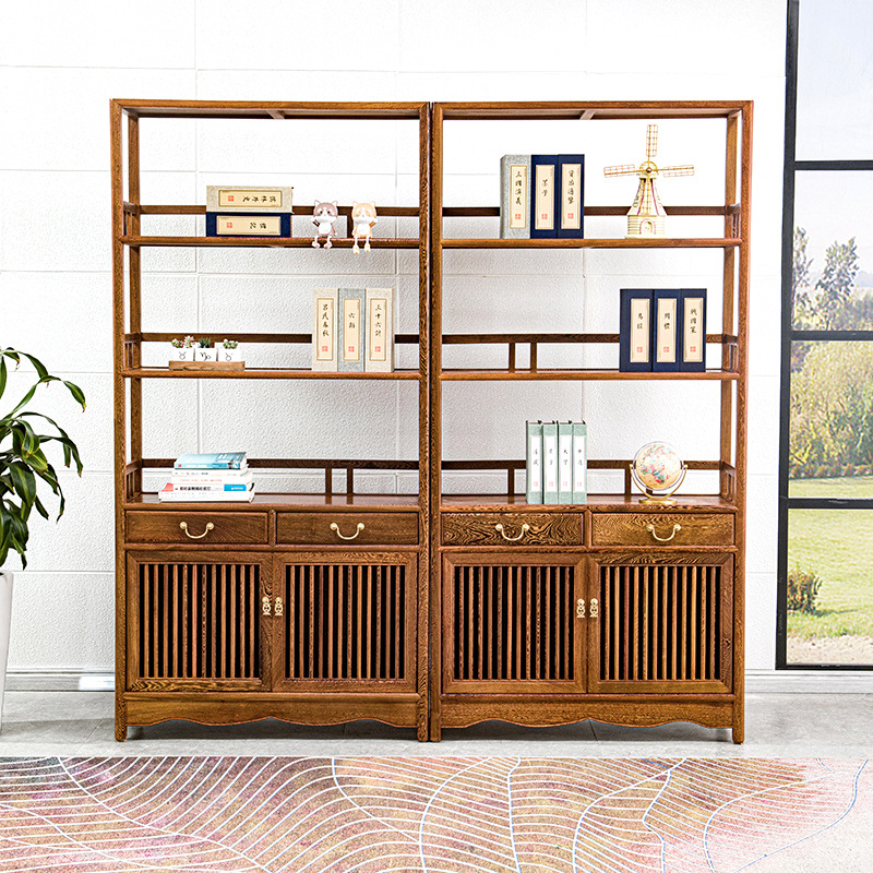 手羽木本棚全実木新中国式着地家庭用展示棚赤木仕切り木製シンプル本棚