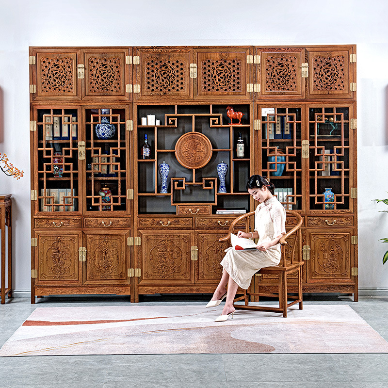 鶏の羽の木の本棚の3つのセットの実木の赤い木のロッカーの新しい中国式の酒の戸棚の本棚の組み合わせは高くなります。