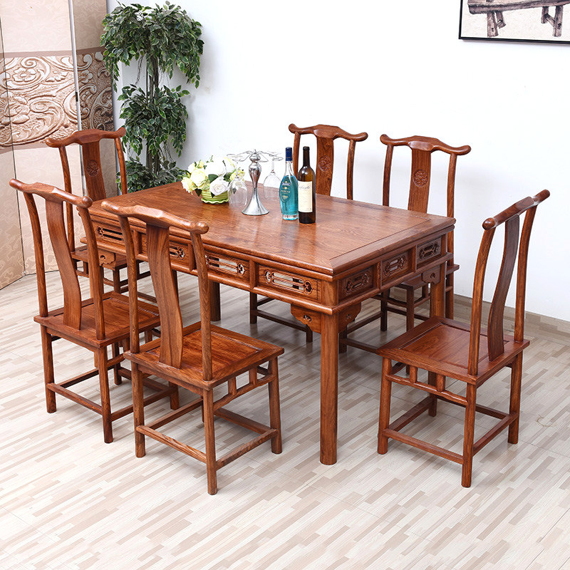 芸銘の天下の赤い木の家具の花梨木の食卓と椅子の組み合わせの長いテーブルのハリネズミの紫檀の食卓のレストランのテーブル