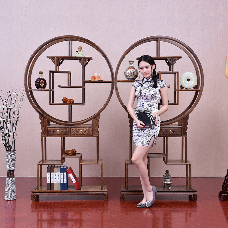芸銘天下紅木家具実木骨董棚多宝閣博古棚陳列棚鶏翅木円博古棚
