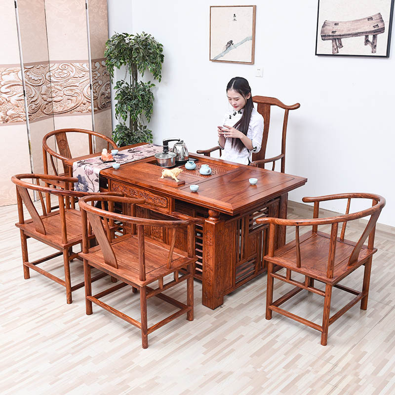 芸銘天下紅木家具花梨木泡茶卓ハリネズミ紫檀中国式実木工夫茶テーブルと椅子の組み合わせ