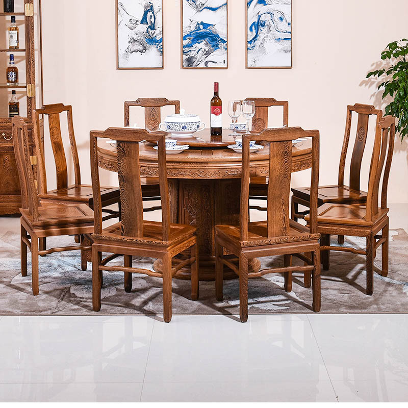 芸銘の天下の赤い木の家具の手羽木の食卓は古い中国式の食事のテーブルの大きい丸い食卓をまねて回転盤を持ちます。