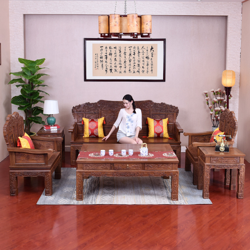 芸銘の天下の赤い木の家具の客間の実木のソファーの中国式の古風なソファーの椅子の組み合わせの手羽の木のソファー