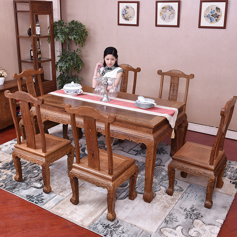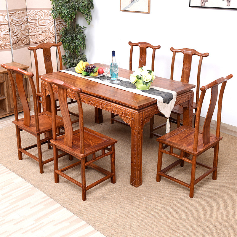 芸銘天下紅木家具花梨木食卓と椅子の組み合わせ長方形の実木家庭用ハリネズミ紫檀食卓