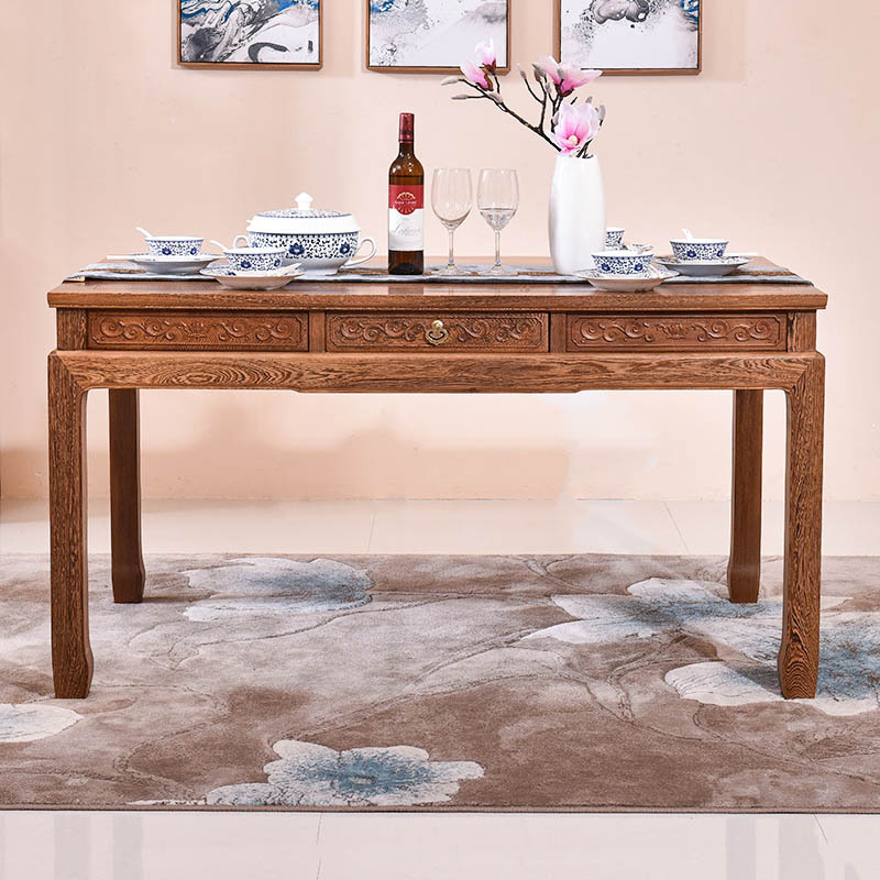 芸銘の天下の赤い木の家具の手羽先の木の彫刻の食卓は古い中国式のレストランの長方形の食卓に似せます。