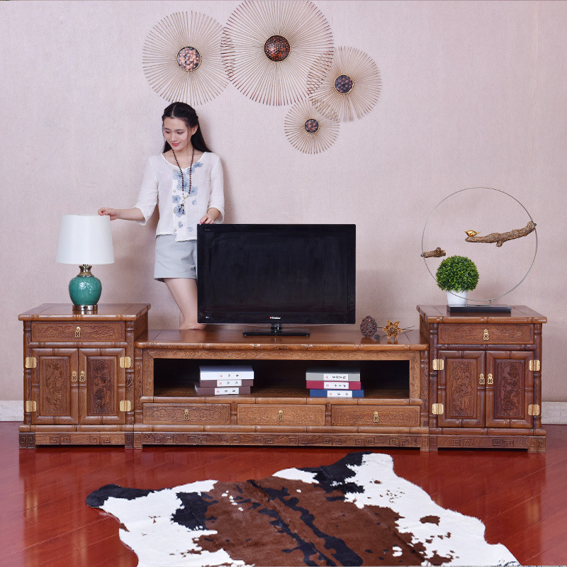 芸銘の天下の赤い木の家具の手羽の木の液晶のテレビの台の中国式の模造の木の客間の竹の節のテレビの台