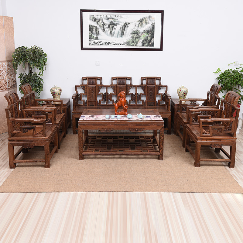 芸銘の天下の赤い木の家具の客間の実木は古いソファーの椅子の組み合わせをまねて一歩一歩高く上がります。