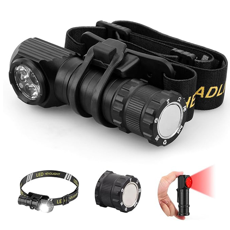 アウトドア多機能アルミ合金三眼強光ヘッドライトテール強磁取り外し可能ハンドグリップ緊急照明懐中電灯