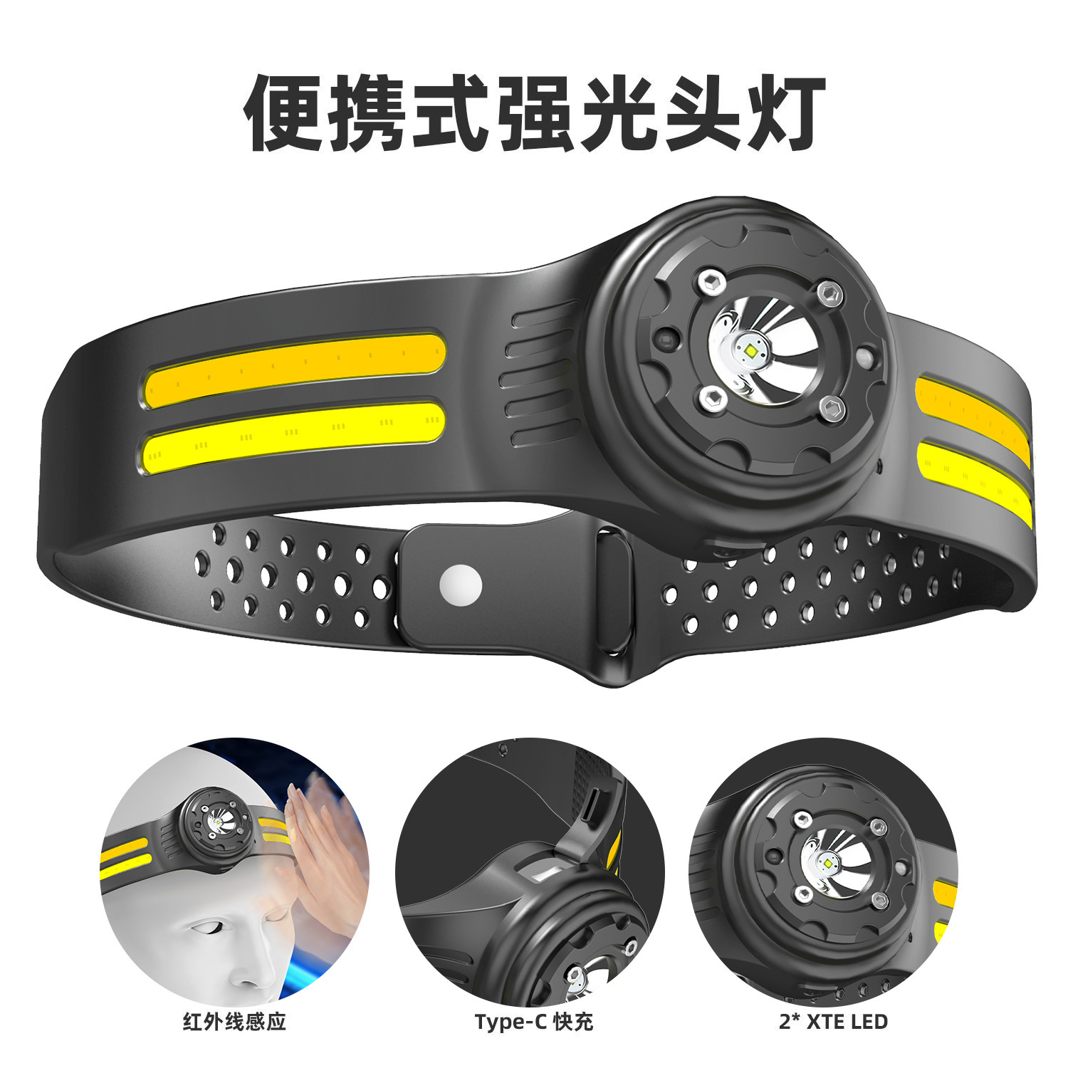 新型シリカゲル強光ヘッドライト充電感応屋外多機能緊急led + cobヘッドセット式作業灯