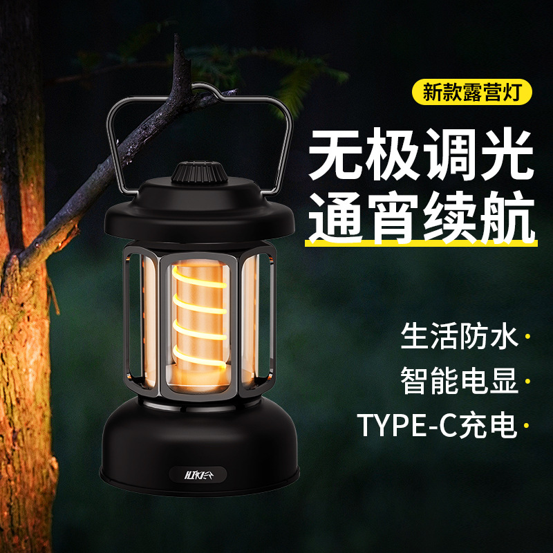 新型ledレトロキャンピングライトYTPE-C快充多機能手提げライト屋外タングステン線キャンピングライト雰囲気灯
