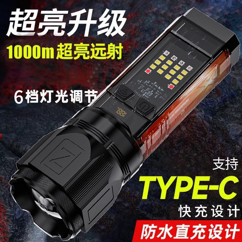 クロスボーダー新型8led強光懐中電灯type-c充電アウトドア防水アルミ合金ハイパワー照明懐中電灯