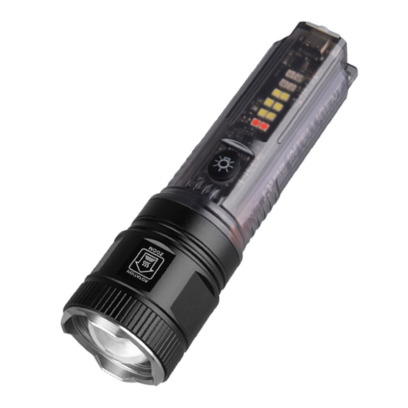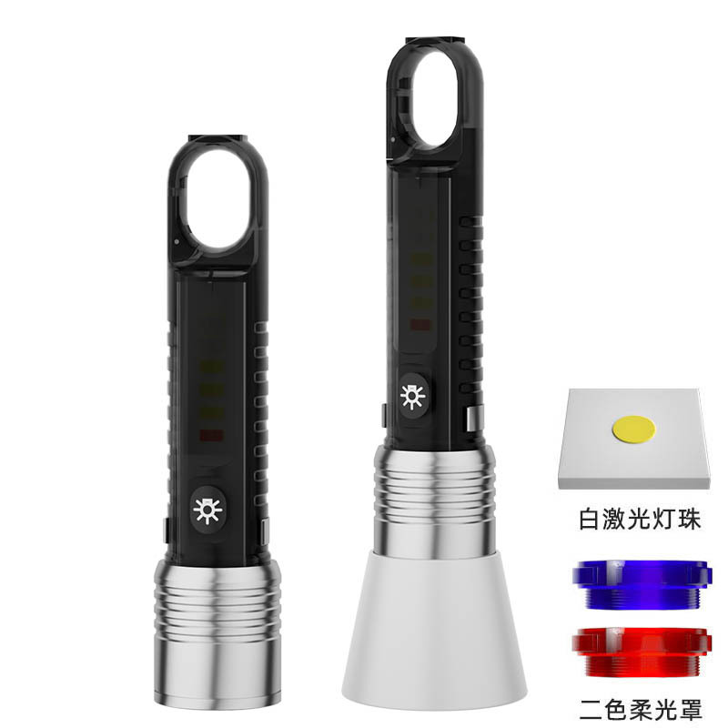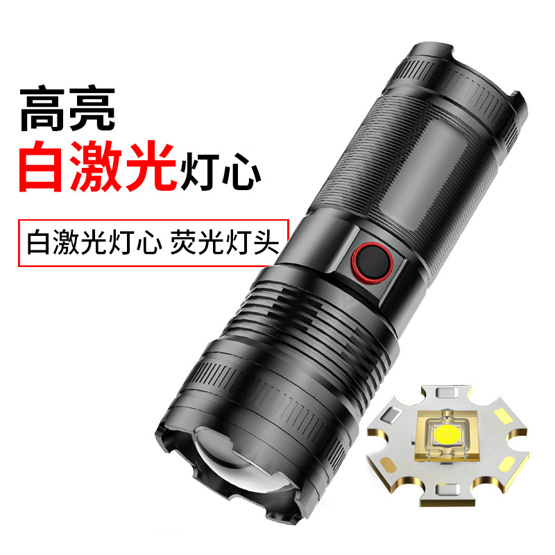 新型白レーザー懐中電灯伸縮ズーム多機能帯出力TYPE-C充電屋外強光懐中電灯