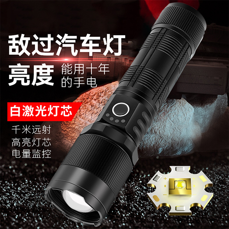クロスボーダーp50ホワイトレーザー懐中電灯強光遠射type-c急速充電伸縮ズーム小鋼砲懐中電灯