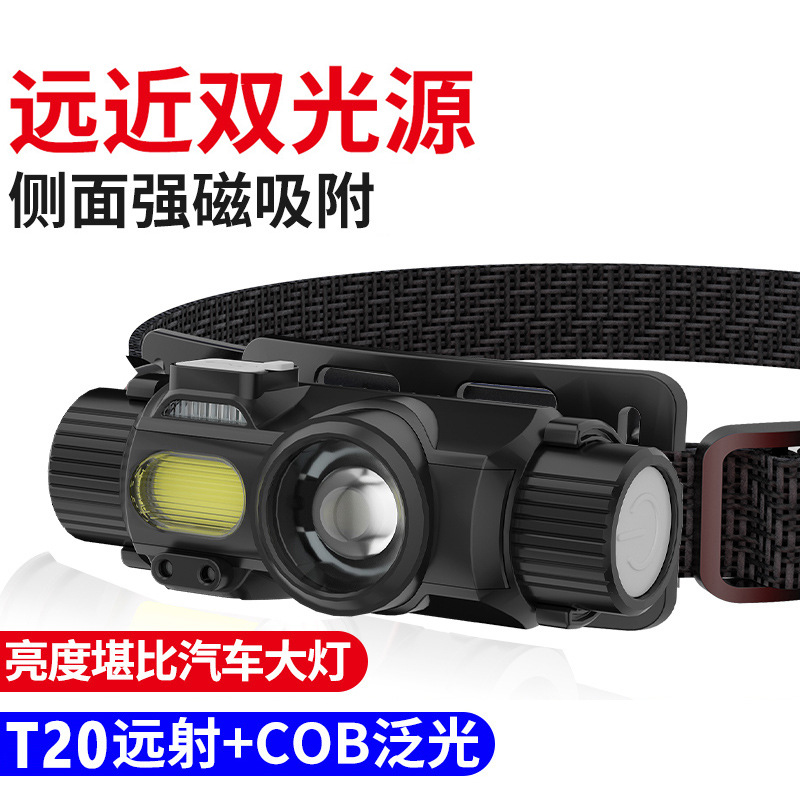 新型屋外強光ヘッドライト集光遠射usb充電多機能屋外cobヘッドセット照明夜騎灯
