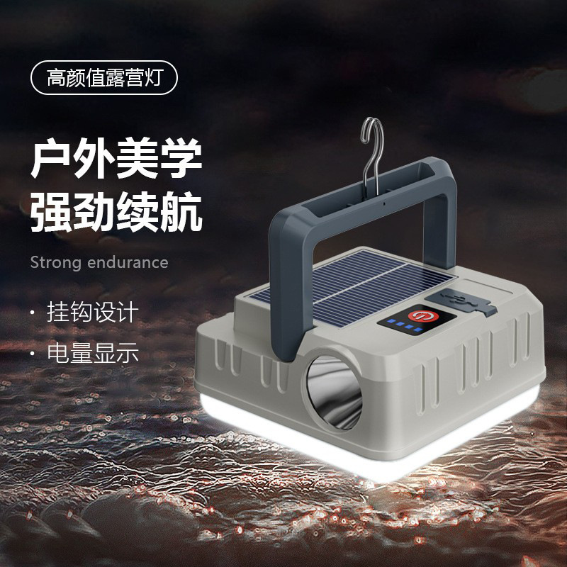 新型太陽エネルギー手持ち懐中電灯type-c充電多機能帯出力屋外模擬炎手持ち灯