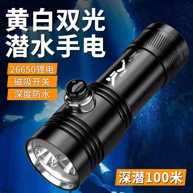 国境を越えた新型白黄双光源xhp50強光潜水懐中電灯led屋外携帯t 6照明懐中電灯