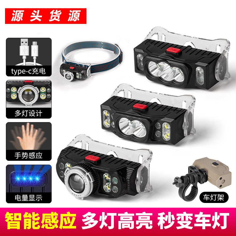 国境を越えた新製品cob強光照明ヘッドは屋外の夜に走るヘッドライトの多機能手を振ってヘッドライトを感知する