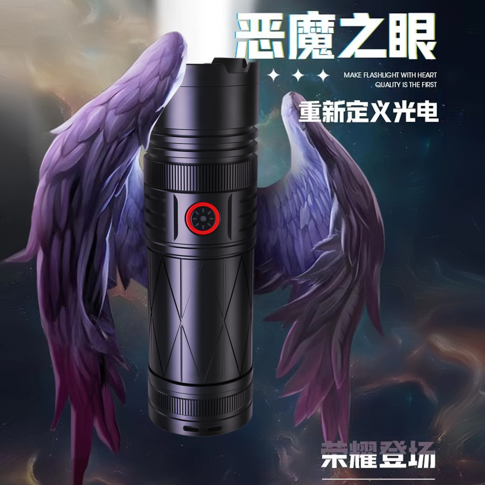 国境を越えた新型白レーザー悪魔の目懐中電灯屋外超明るい集光遠射ズーム白レーザー懐中電灯