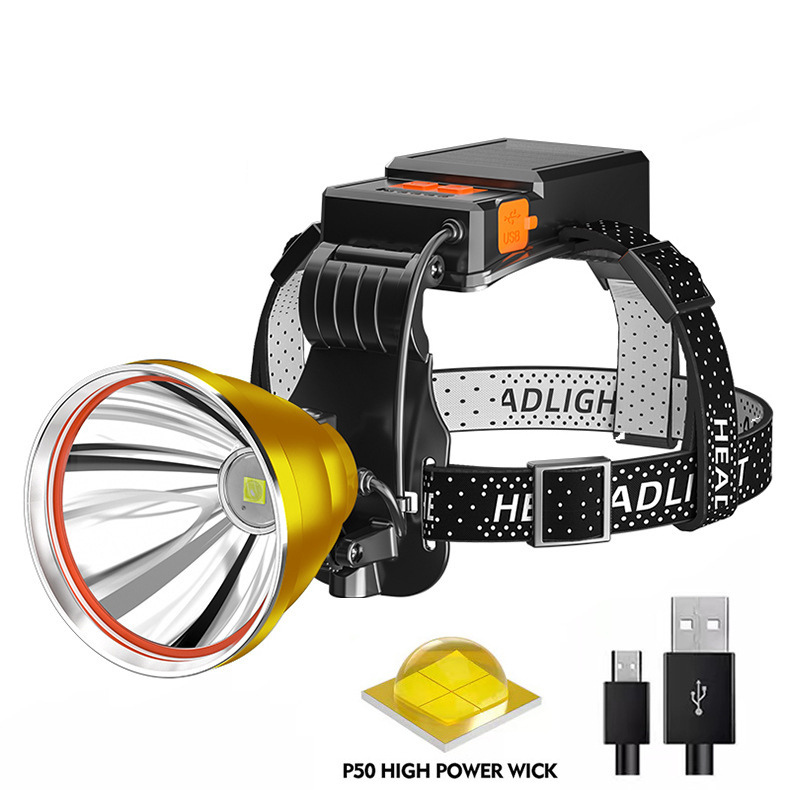 クロスボーダー新型ヘッドライトled屋外照明p50强光ヘッドライトusb充电ヘッドセットアウトドア夜钓り照明