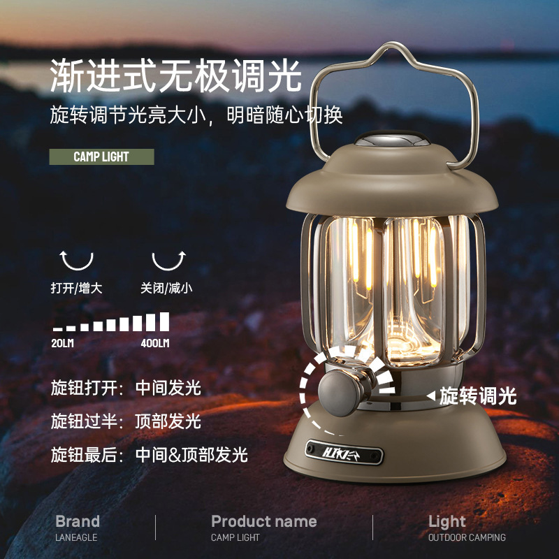 クロスボーダー新型アウトドア高級キャンプライト屋外レトロキャンプライトキャンプライト携帯型ハンディサーチライト