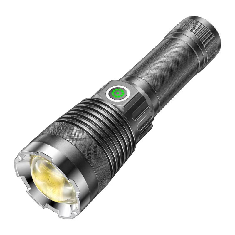 振音爆金白レーザー小鋼砲屋外強光手電知能電力量表示type-c充電懐中電灯