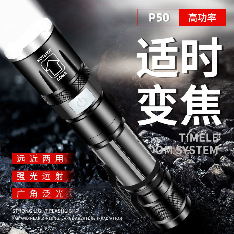 クロスボーダー緊急多機能懐中電灯強光p50懐中電灯遠射屋外ポータブルusb充電ズーム家庭用
