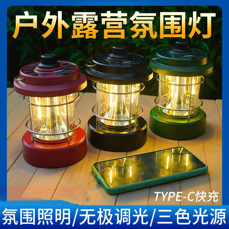 クロスボーダー新型アウトドア雰囲気キャンプライトtype-c充電キャンプライト屋外キャンプライト緊急作業用ライト