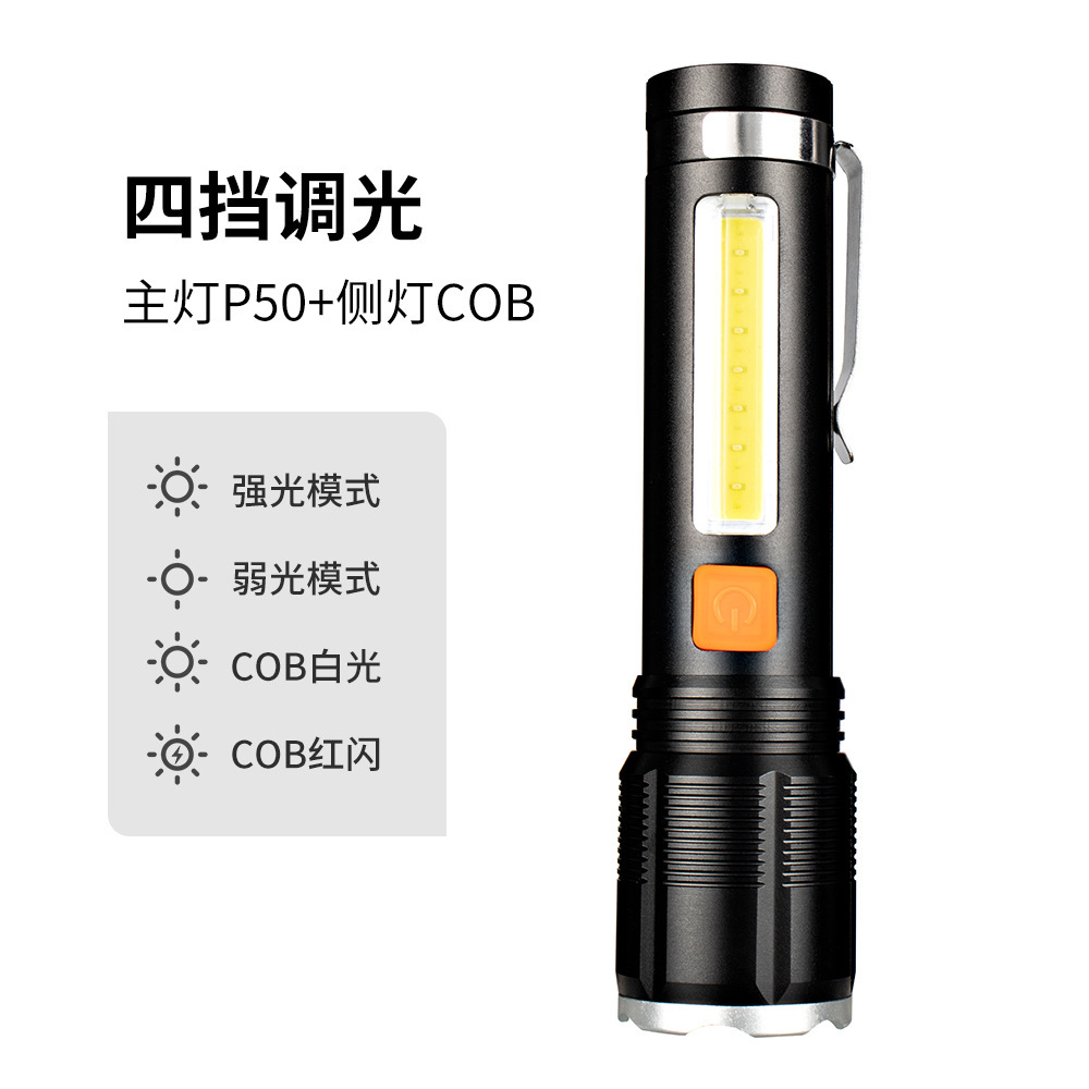 クロスボーダー新型p50強光懐中電灯cob緊急修理作業灯屋外防水照明遠射懐中電灯