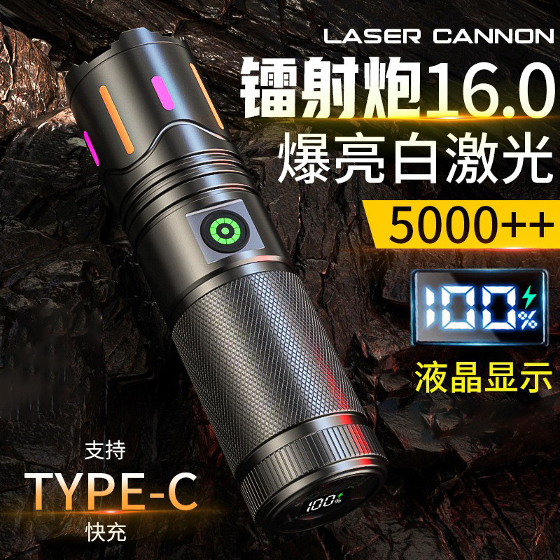 クロスボーダー白レーザー强い光の懐中电灯Type-C充电屋外多机能デジタル表示强い磁気COB働くサイドライト