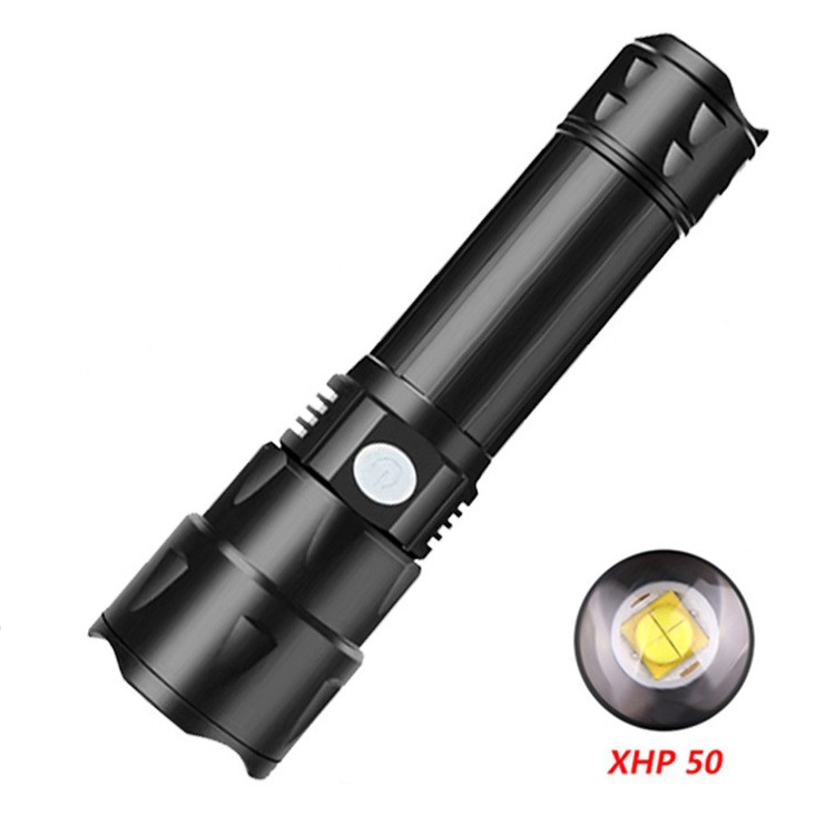 クロスボーダー新型xhp50強光懐中電灯usb充電伸縮ズーム低電気注意屋外照明懐中電灯