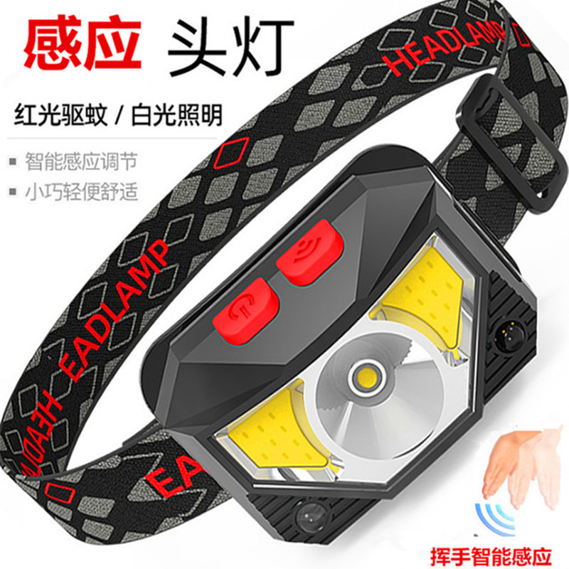 国境を越えた新型led強光誘導ヘッドライトヘッドセット式夜ランニング釣り充電ミニcob小ヘッドライト卸売り