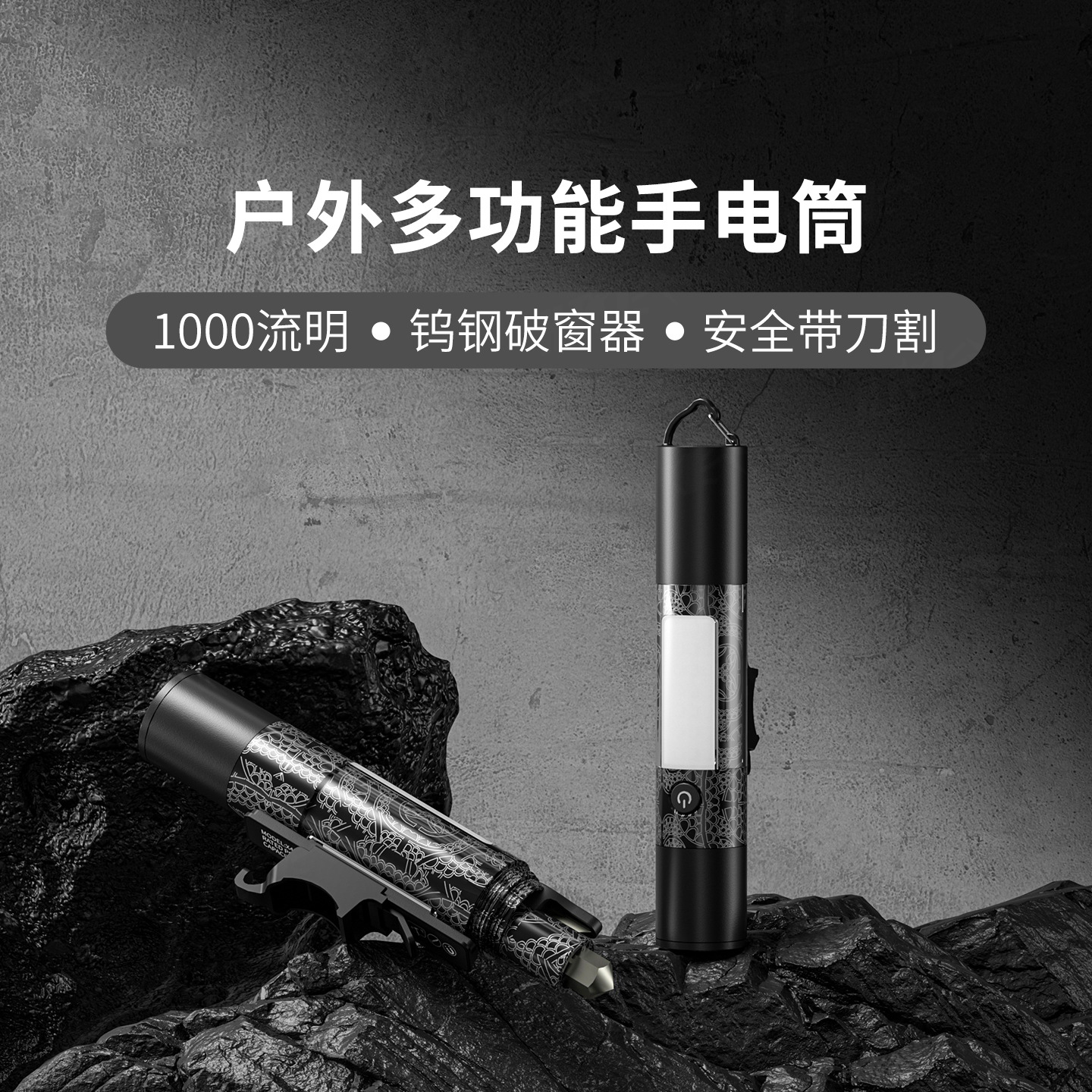 多機能充電式懐中電灯、屋外ポータブル強力な光長距離照明、サイドライト付き窓破壊安全カッター懐中電灯