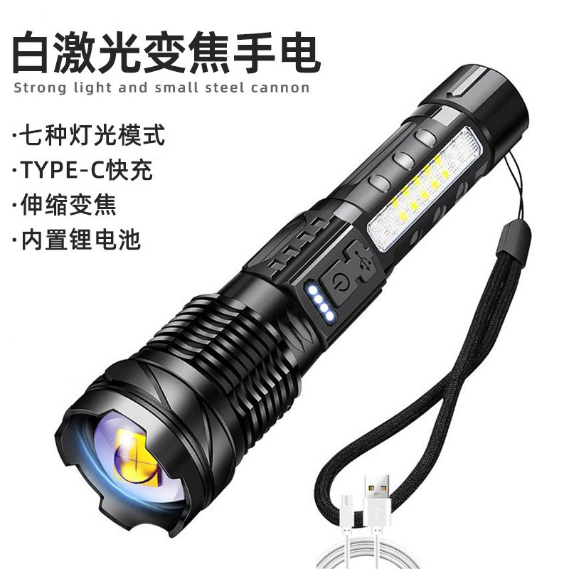 新型クロスボーダー伸縮ズーム強い光の懐中電灯usb充電屋外照明はコブ赤青警告作業灯付きです。