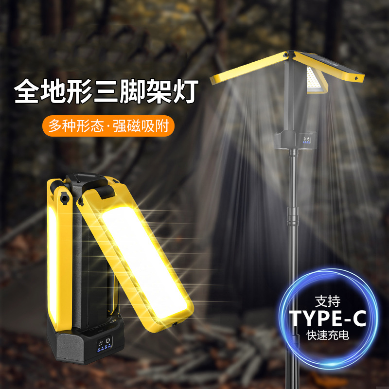新しい屋外折りたたみスタンドキャンプランプ USB 充電式多機能黄色と白のデュアル光源大型投光照明