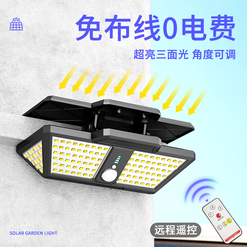 屋外ソーラー一体型街路灯新しい人体誘導ガーデンライトリモコン付きウォールライト防水LED省エネライト