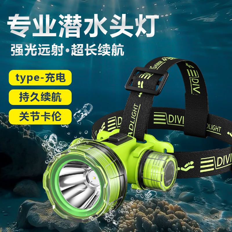 国境を越えた屋外の新型定焦点潜水ヘッドライトが海を追い抜いて長い水中作業ヘッドは装備照明ヘッドランプを装着している