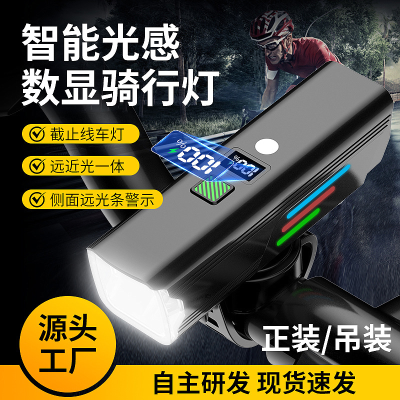 自転車ヘッドライト高ルーメン充電デジタルディスプレイサイクリングライト屋外夜間走行照明サイクリング機器固定ライト