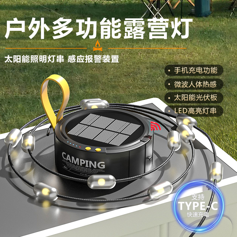 クロスボーダーLED屋外キャンプライト屋外キャンプテント装飾照明ライトソーラーUSB充電雰囲気ストラップライト