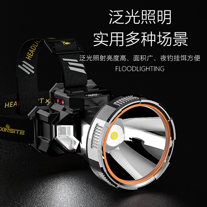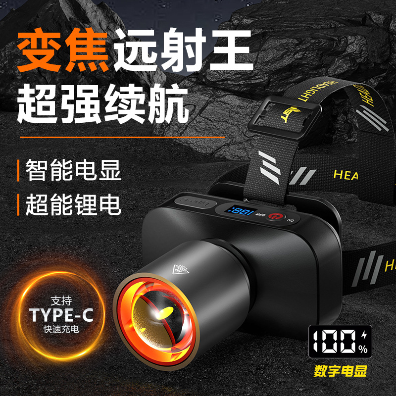クロスボーダー起爆ヘッドライト屋外充電デジタル多機能三光源ヘッドライト夜釣りライト携帯作業ヘッドセットライト