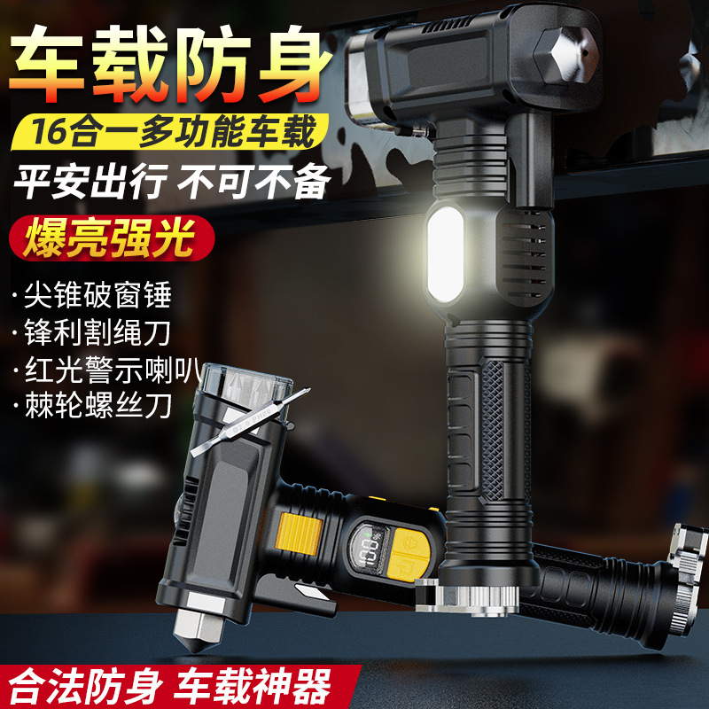 車の多機能懐中電灯ウィンドウブレーカーハンマードライバー屋外赤色光警告電子ホーン COB サイドライト懐中電灯