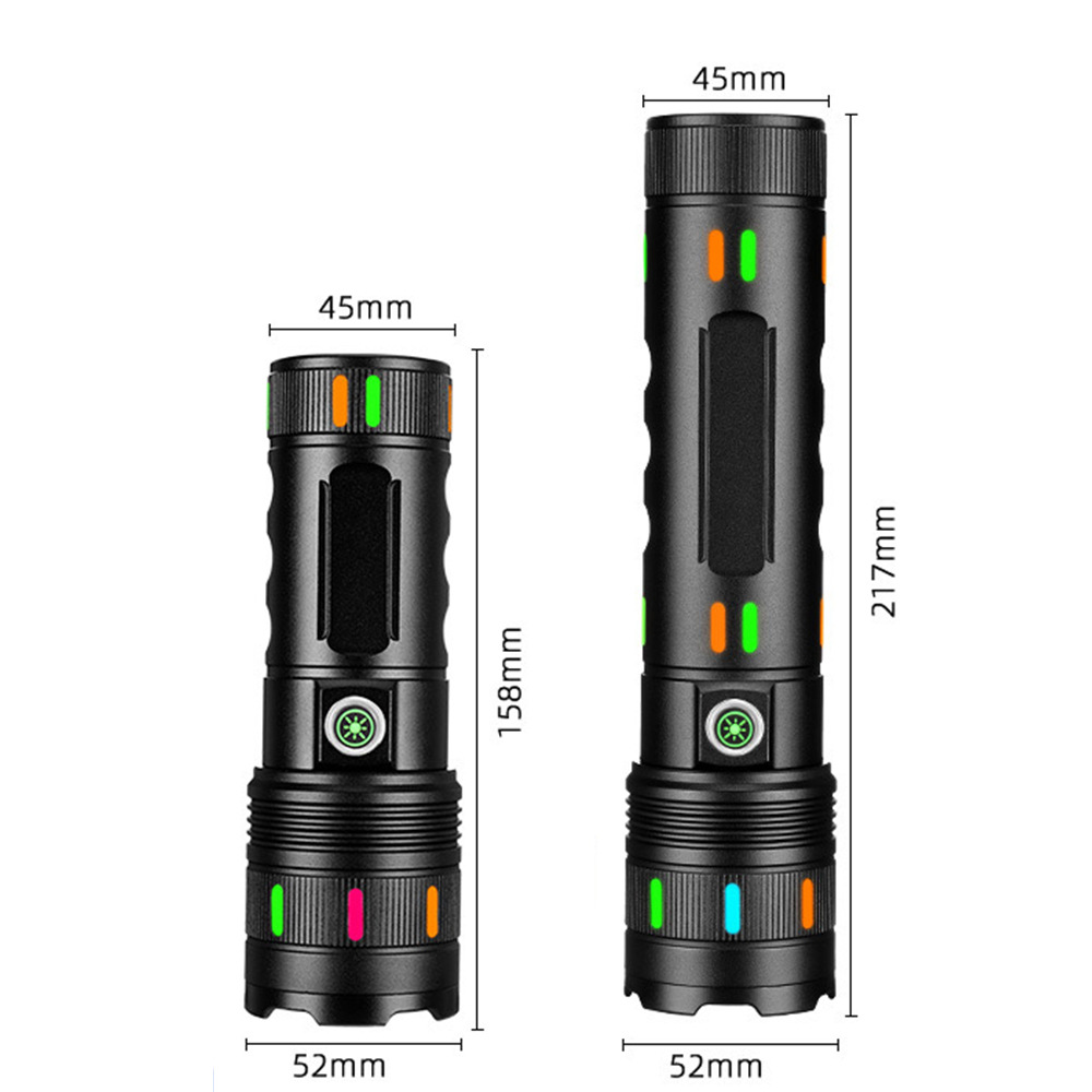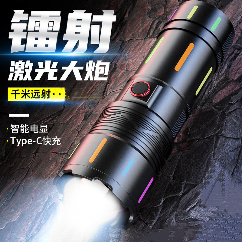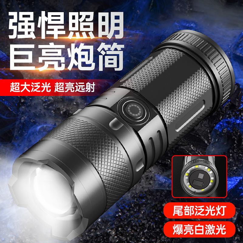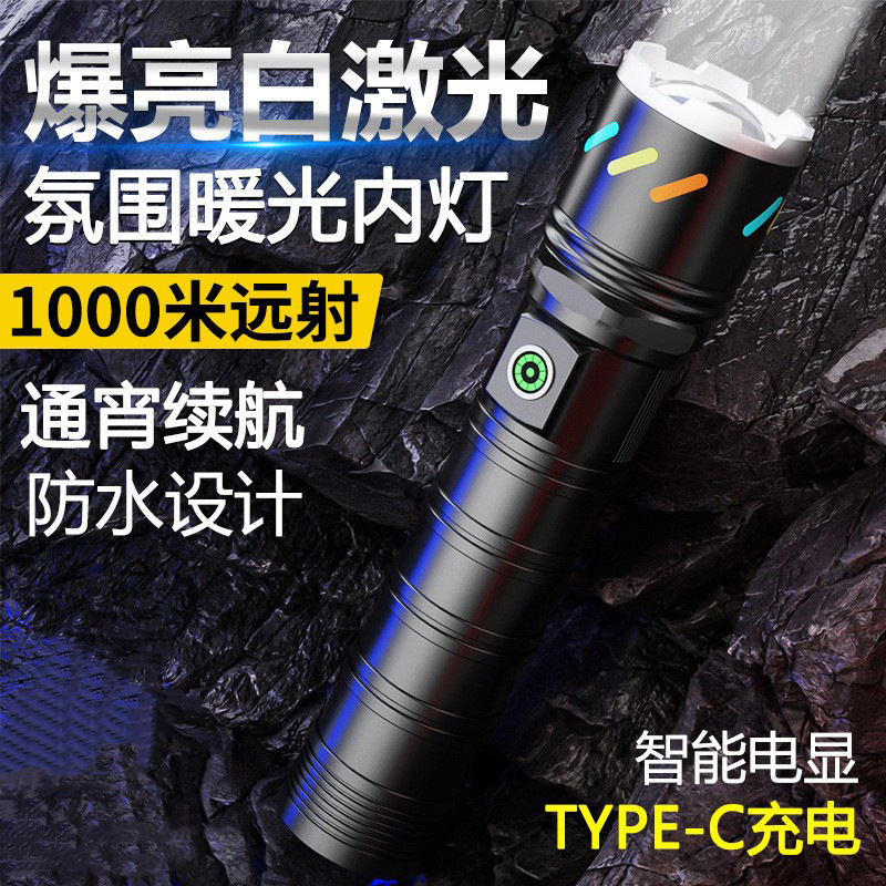 新型白レーザー懐中電灯TYPE-C充電帯出力ズーム雰囲気灯屋外防水強光懐中電灯