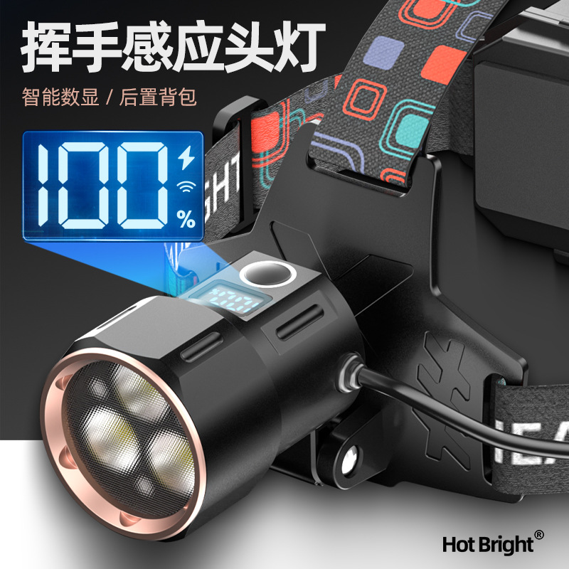 新しいLEDヘッドライトUSB充電屋外多機能デジタル電気夜釣りライト強い光センサー多眼ヘッドライト