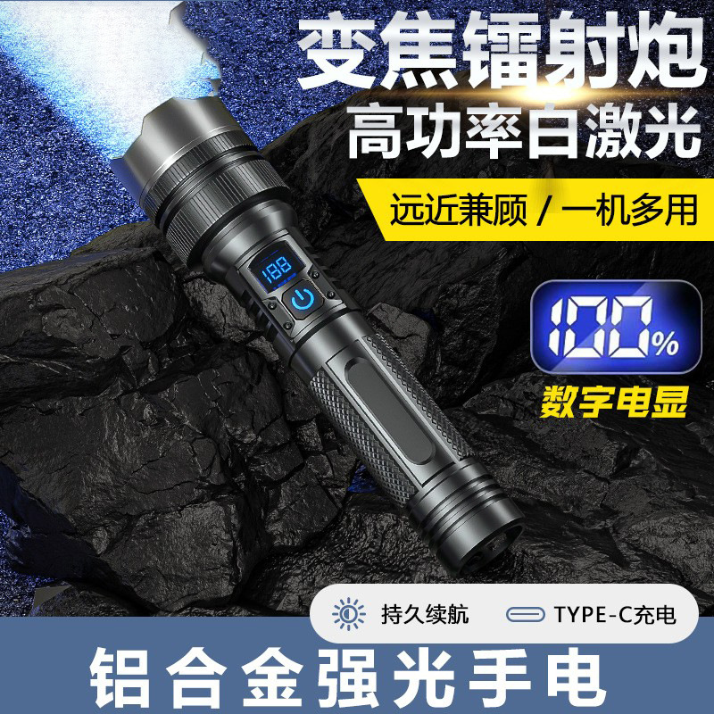 クロスボーダー新モデルホワイトレーザー懐中電灯ハイパワーアルミニウムヘッド伸縮ズーム多機能充電式デジタルディスプレイ懐中電灯