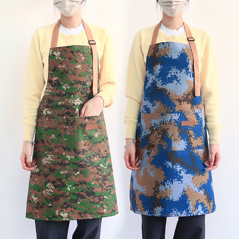 クロスボーダーエプロン ケータリングシェフ 迷彩柄 ハンガーエプロン 女性用エプロン カスタムロゴ印刷 防水・防油 作業服エプロン