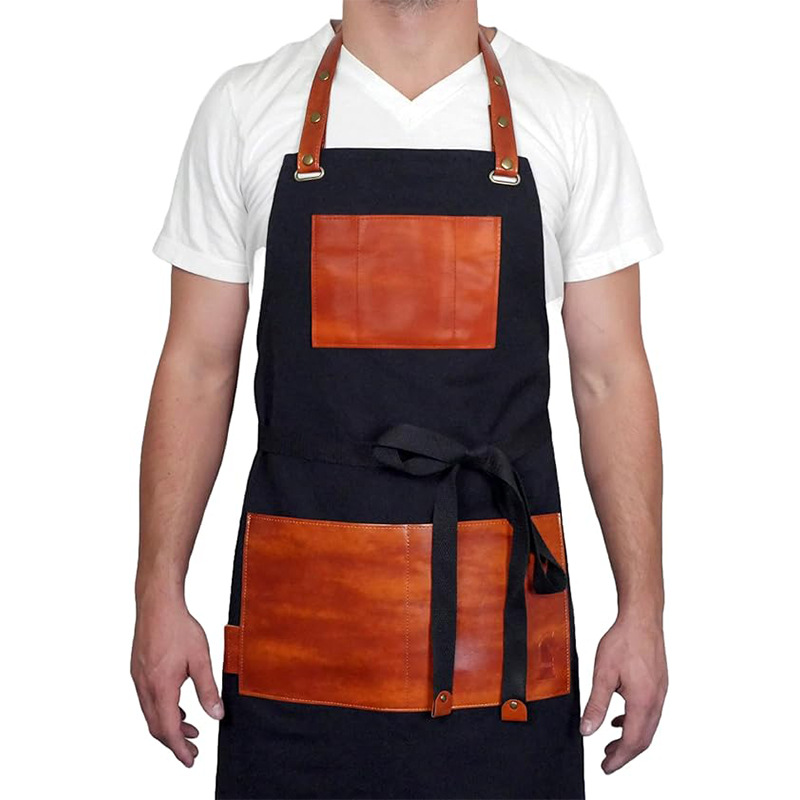 クロスボーダーの高級オーダーメイドの人気ファッションの理髪は首の厚いズックのアマゾンの男性PUの仕事のエプロンをかけることができます。