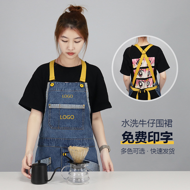 アマゾンクロスボーダー水洗いデニムエプロン耐摩耗性パーマ染め美容師キッチン男性従業員工服メーカー卸売り