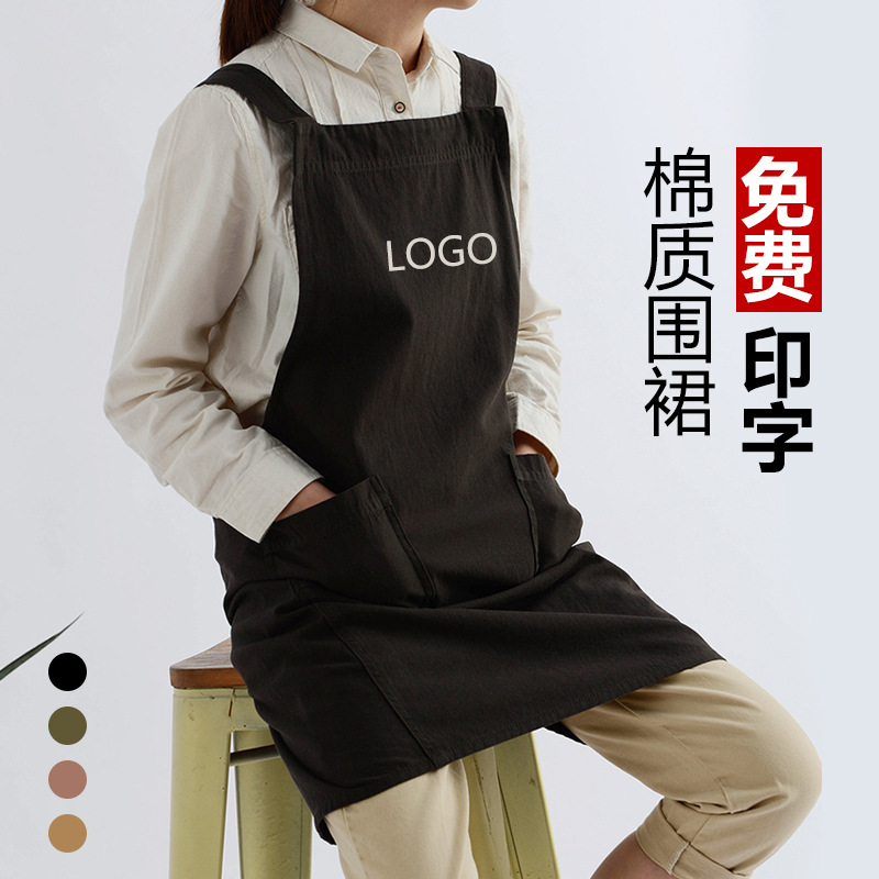クロスボーダー文芸清新日韓系エプロン家庭服カバーアマゾン花屋カフェ作業服印刷ロゴ