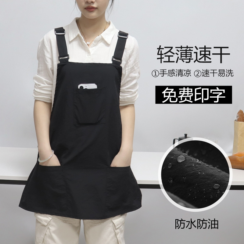 国境を越えたアマゾン専用防水エプロン韓国式女性喫茶店ミルクティー印ロゴ調節ストラップ作業エプロン