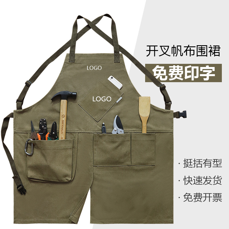 クロスボーダー厚手キャンバスエプロンカスタマイズ可能ロゴ汚れ耐摩耗性マルチポケット大人作業服エプロン卸売