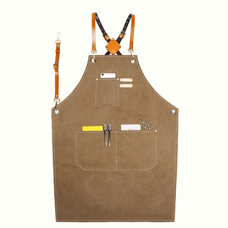 アマゾンクロスボーダーエプロン厚手キャンバスpuエプロンガーデニングバーベキュー師作業服レストラン理髪師ファッションエプロン